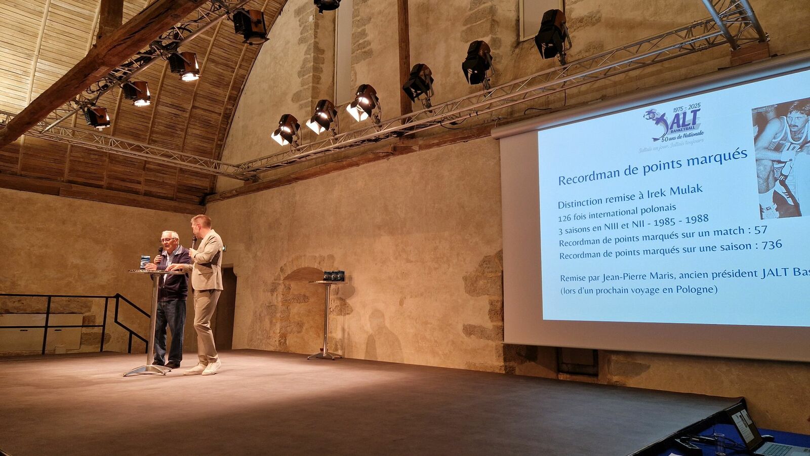 Dans ce magnifique et historique lieu du Mans, soirée d'évocation de cette belle période de 50 ans où le basket JALTAIS a été à l'honneur.