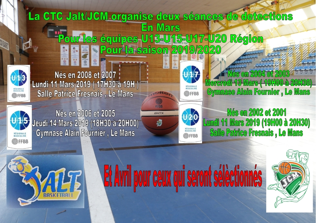 En préparation de la saison 2019-2020, les équipes de la CTC JALT/JCM organisent des sessions de détections. .